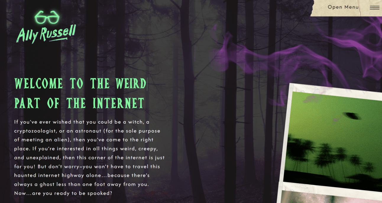 First, I’m beyond excited to share with you allyrussellbooks.com! My new website is alive and it would make Fox Mulder and Fi Phillips proud. Head over there for a behind-the-scenes peek at It Came from the Trees, real cryptid evidence, fun facts, and more.